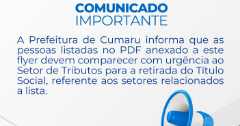 A Prefeitura de Cumaru informa que as pessoas listadas no PDF anexado a este flyer…