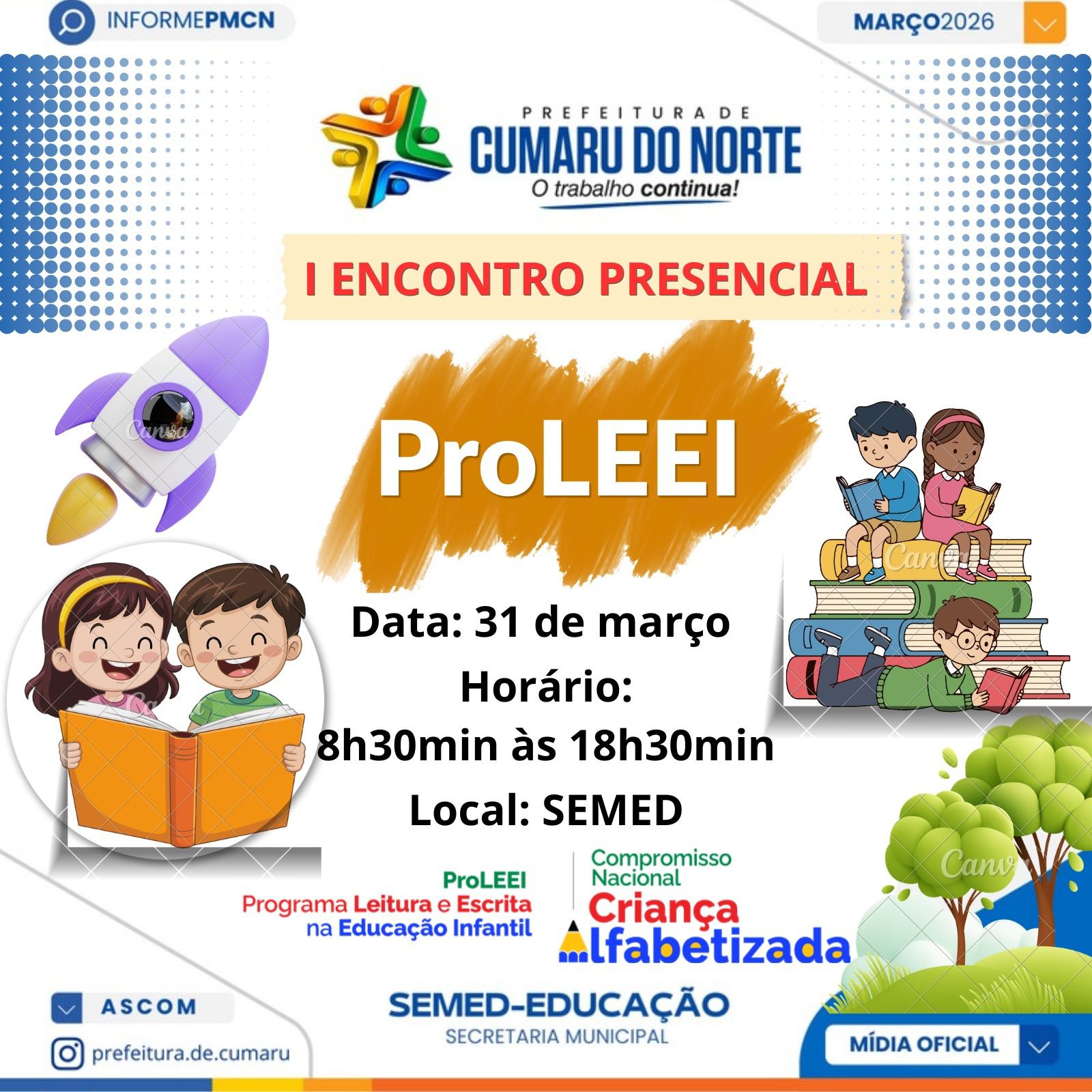 A Prefeitura de Cumaru do Norte convida você para um momento especial de aprendizado e troca de experiências no I Encontro Presencial do ProLEEI (Programa de Leitura e Escrita na Educação Infantil).
